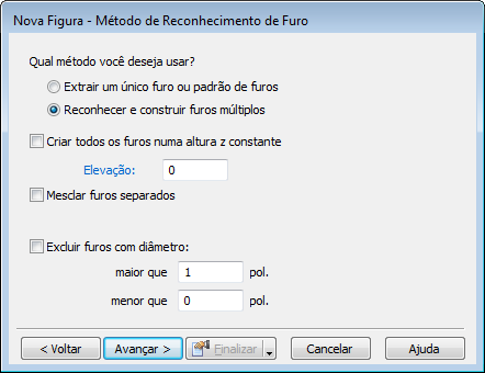 Criar todos os furos numa altura z constante — Criar todas as figuras de Furo na mesma altura z, independente da posição do furo no sólido.