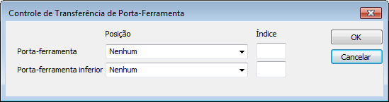Utilize esse diálogo para configurar a Posição e Índice que você deseja utilizar para cada porta-ferramenta na sua máquina durante manipulação de peça.