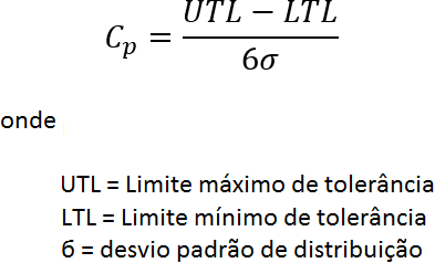 O desvio padrão calculado para a distribuição normal de cada cota é calculado com base na fórmula a seguir para Cp: