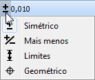 Para alterar o tipo, selecione o ícone que indica o tipo e também o tipo desejado na lista suspensa. O tipo padrão é ± Simétrico.