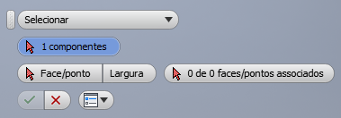 Um deslocamento não pode ser definido se um dos recursos referenciados por uma restrição é um recurso de tamanho. Por exemplo, um cilindro ou uma largura com uma cota de tamanho associada. Essas instâncias são mostradas em uma fonte cinza-claro. Se todas as restrições de montagem na pilha atual envolvem um recurso de tamanho, a mensagem Deslocamento não poderá ser aplicada a recursos de tamanho! é exibido na caixa de diálogo Adicionar cota de deslocamento, e o botão OK é desativado.