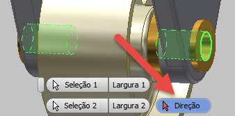 Se não for possível determinar a direção a partir das seleções, como ao medir entre dois recursos cilíndricos, será necessário fazer uma seleção para definir a Direção da pilha.