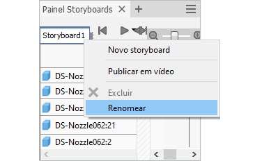 É possível renomear qualquer storyboard durante a criação ou durante a edição de apresentações. Clique com o botão direito do mouse no título do storyboard e selecione Renomear.