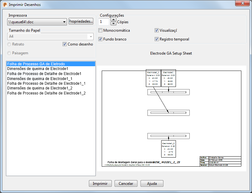 A caixa de diálogo Imprimir Desenhos é exibida: