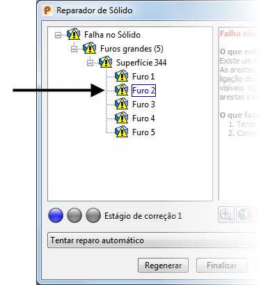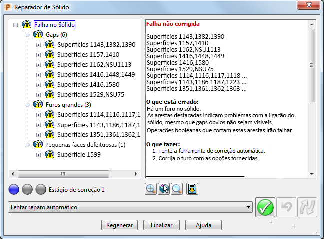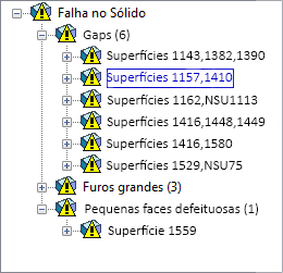 Utilize o Reparador de Sólido para encontrar e corrigir falhas em sólidos. O seguinte é classificado como falha: