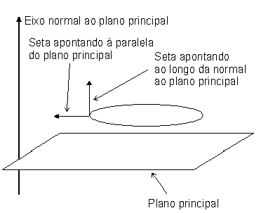 Com Normal ao plano principal selecionado nas opções em Medir ângulo a partir de, uma seta é paralela ao plano principal e a outra ao eixo normal ao plano principal (veja abaixo).