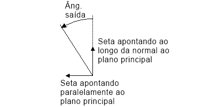 O ângulo de saída é medido entre as setas como mostrado abaixo.