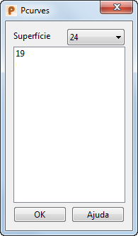 - Na lista Superfície, selecione a superfície que contém as pcurves com as quais deseja trabalhar. As pcurves na superfície serão listadas.