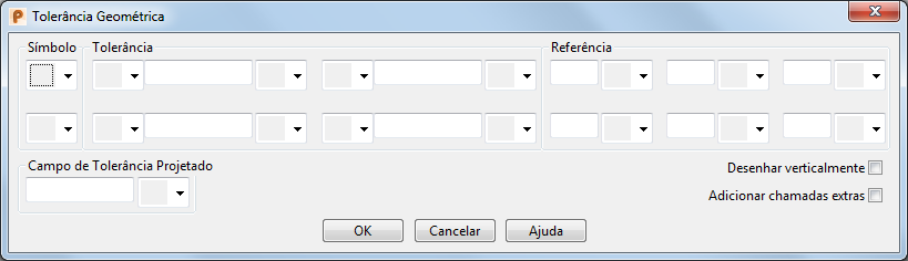 Utilize este diálogo para definir as tolerâncias geométricas contidas no balão.