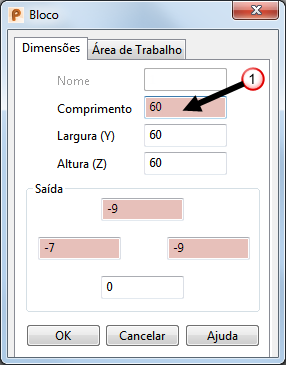 O diálogo para a edição dos primitivos selecionados é exibido, por exemplo, o diálogo Bloco.