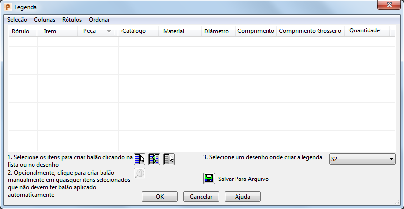 Utilize esse diálogo para especificar os dados que devem ser exibidos na Legenda para pinos ejetores, pinos macho e pinos de retorno.