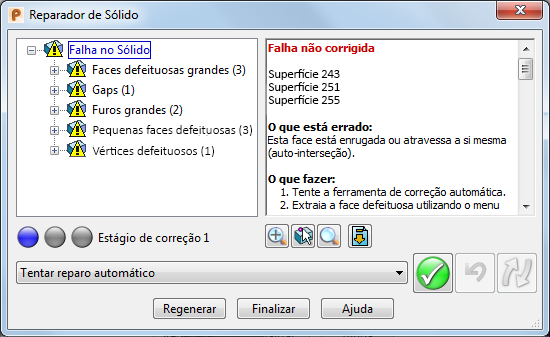 - Clique na guia Ferramentas de Sólido > painel Corrigir > Reparador de Sólido.