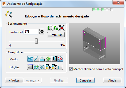Esta página do Assistente de Refrigeração é utilizada para inserir e editar o layout dos canais de refrigeração.