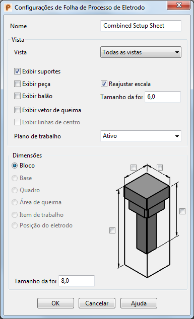 Nota: O template padrão para as folhas de processo de eletrodo é automaticamente atualizado quando você atualiza sua versão do PowerShape. No entanto, caso você tenha personalizado a folha de processo anteriormente, instalar uma nova versão do PowerShape não irá sobrescrever a versão personalizada.