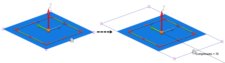 editam o comprimento e comprimento negativo da superfície de extrusão.