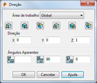 Edite a direção do item selecionado utilizando o diálogo Direção. Uma direção é definida em termos de um vetor unitário.