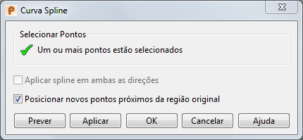 - Utilize as opções no diálogo para aplicar spline aos pontos na curva: