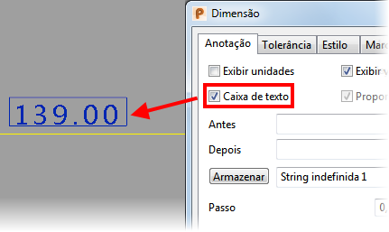 Caixa de texto — Selecione essa opção para adicionar uma caixa de texto em torno da dimensão.