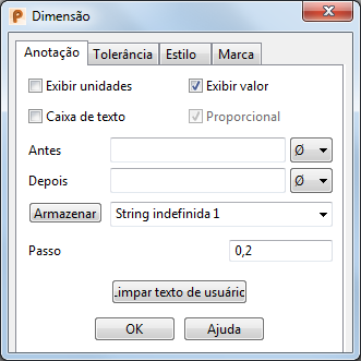Exibir unidades — Selecione essa opção para exibir as unidades de medida depois do valor da dimensão.