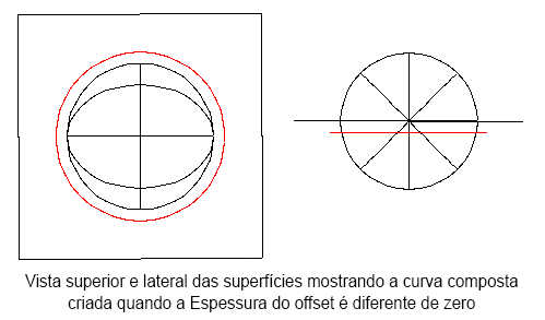 Quando você clica em OK, o programa calcula onde as superfícies se intersecionariam, caso sofressem offset pela espessura, e cria curvas na interseção