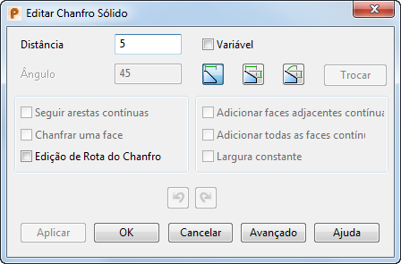 Selecione uma das seguintes opções para recriar o chanfro utilizando: