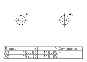 As coordenadas dos pontos fixos utilizados para posicionar os símbolos são exibidas na legenda. Uma coluna de comentário também é traçada na legenda. As linhas da coluna de comentário são mescladas para os símbolos selecionados.