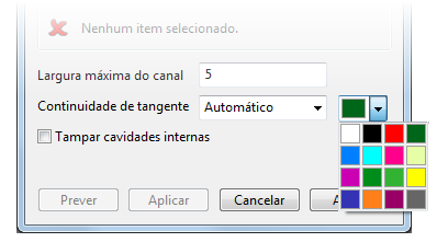Caso a operação falhe, a mensagem de erro Nenhuma superfície de canal criada ou Faces de entrada não utilizáveis é exibida na porção inferior do diálogo.
