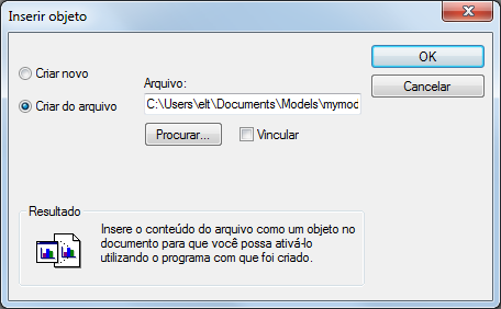 Se você não selecionar a opção Vincular, uma cópia do arquivo é incorporada à vista. Alterações no arquivo externo não alteram a vista.