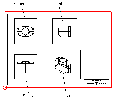 Caso um desenho de Notas ainda não exista, isso criará um desenho contendo quatro vistas dos objetos atualmente exibidos no seu modelo: