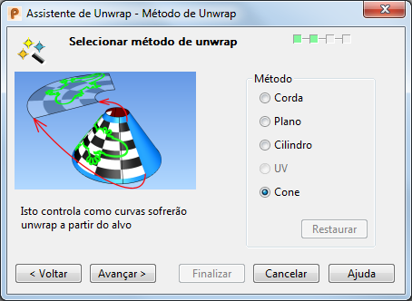 - Selecione guia Arames > painel Da Seleção > painel Wrap > Unwrap.