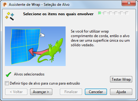 Utilize esta página para selecionar as superfícies alvo e/ou sólidos que devem sofrer wrap.