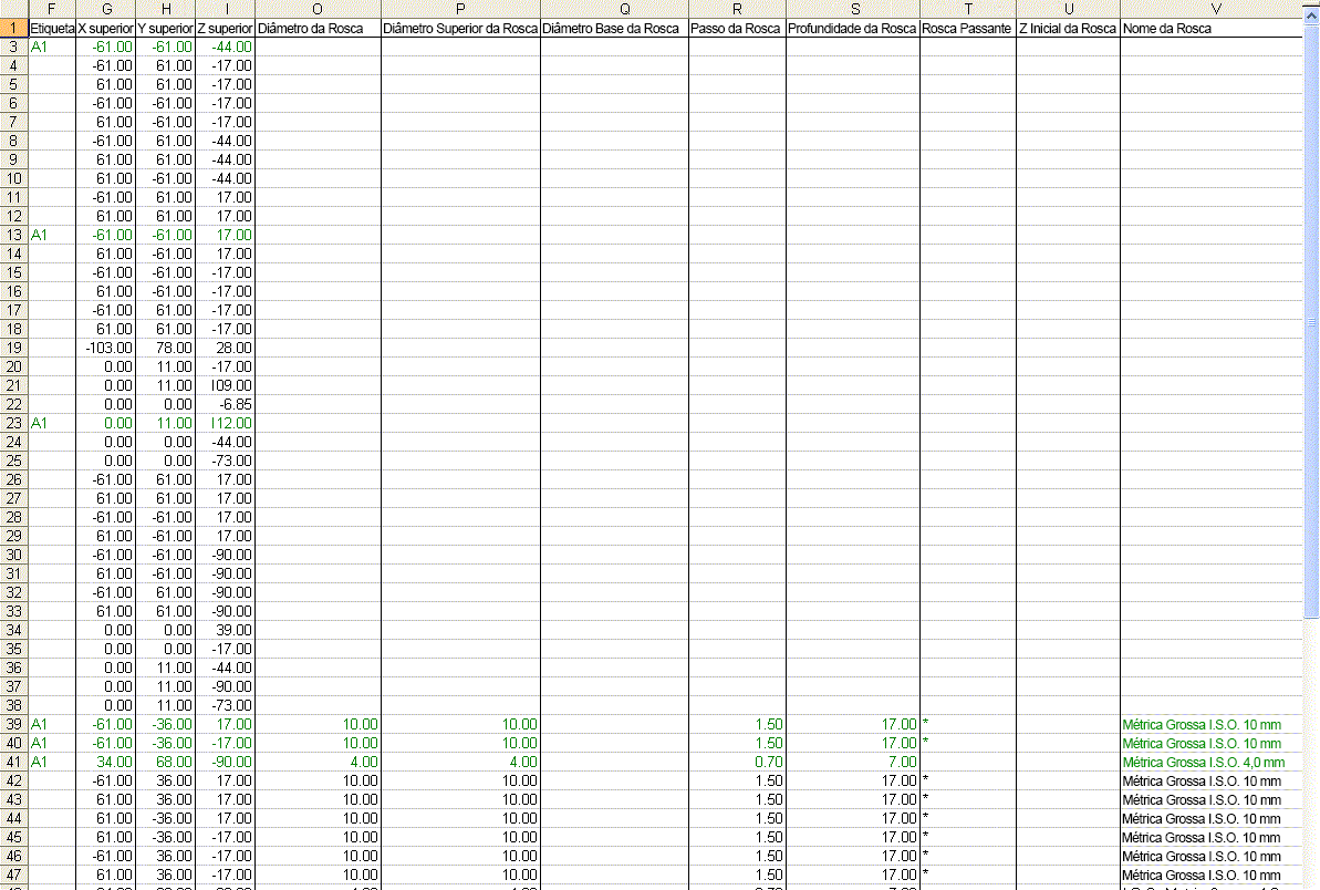 - Por Coluna — Para classificar a legenda e aplicar cor de acordo com a ordem de classificação. A planilha a seguir foi classificada pela coluna Diâmetro da Rosca antes da seleção que Por Coluna tenha sido selecionada: