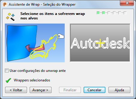 Usar configurações do unwrap anterior — É selecionado automaticamente caso o modelo de arames tenha sofrido unwrap anteriormente.