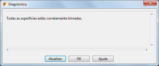 Pcurves mal definidas (que podem ocasionar superfícies mal trimadas) podem ser identificadas utilizando a guia Ferramentas de Superfície > painel Corrigir > Mal Trimadas. A seguir, é possível analisar dados de fronteira, gerando diagnóstico para identificar áreas problemáticas.