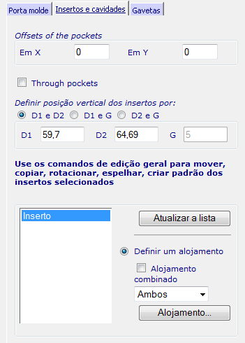 Offsets dos alojamentos — Aplica offset à posição do alojamento dentro das placas macho e cavidade.