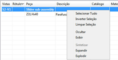 - Selecione Explodir para exibir a tabela com os itens da submontagem exibidos individualmente: