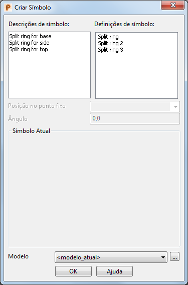 - Definições de símbolos — Utilize a lista para selecionar a definição de símbolo desejada. Quando você seleciona uma definição de símbolo, ela é exibida na janela Símbolo Atual.