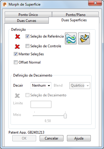 - Caso deseje manter as superfícies de controle e referência após tê-las utilizado para o morph, selecione Manter Seleções.