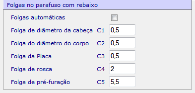 Folgas automáticas - Se esta opção estiver selecionada, as folgas de montagem C1, C2 e C3 apresentam valores pré-definidos baseados no seguinte: