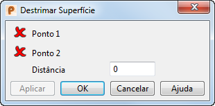 - Clique na guia Superfície > painel Manufatura > Ferramentas > Destrimar para exibir a caixa de diálogo Destrimar Superfície: