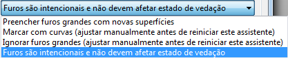 Avançado — Clique neste botão para acessar a página Regenerar furos no sólido, na qual é possível definir valores específicos nas opções para preenchimento de furos.