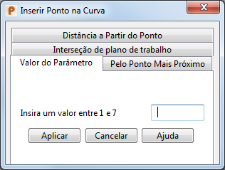 Distância a Partir do Ponto — Para inserir um ponto na curva em uma distância especificada do ponto selecionado no momento. Se não houver nenhum ponto selecionado, será usado o ponto 1.