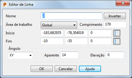 Inverter — Clique nesse botão para inverter a linha de forma que as coordenadas iniciais se tornem as finais e as coordenadas finais se tornem as iniciais.