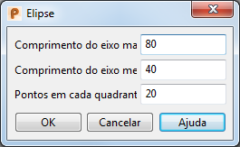 Use o diálogo Elipse para especificar as dimensões da curva de elipse: