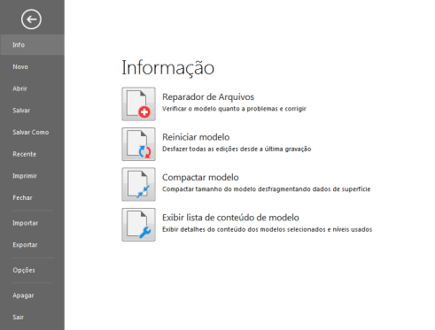 A Vista Controlada abrange a tela do PowerShape quando você seleciona a guia Arquivo na faixa de opções: