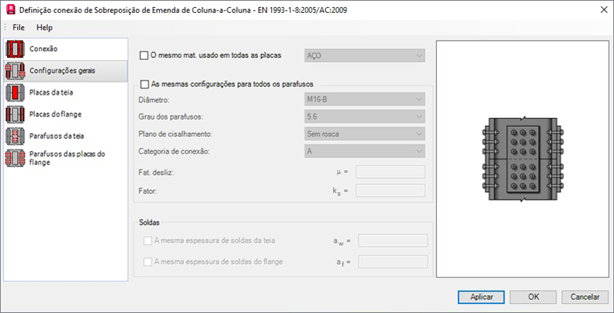 - Selecione esta opção para aplicar a mesma configuração para todos os parafusos da conexão.