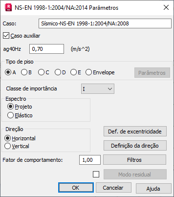 Para concluir a análise sísmica de acordo com as regras fornecidas nessa norma, defina os seguintes parâmetros.