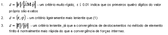 em que {φ, λ} designa pares próprios calculados que incluem determinados erros de cálculo. A primeira expressão define um vetor residual em termos de forças, enquanto a segunda define um vetor residual em termos de deslocamentos.
