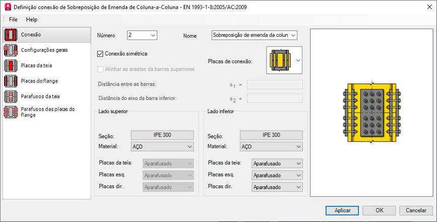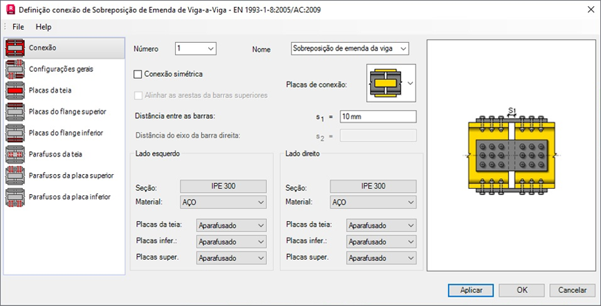 Nota: Esta opção somente está disponível para as conexões de sobreposição de emenda de Viga-para-Viga.