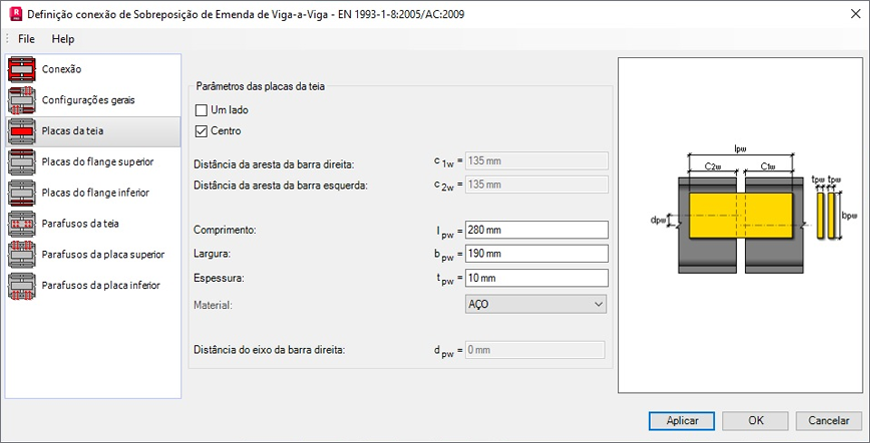 Utilizar o painel Placas da alma para definir as dimensões geométricas das placas nas almas da barra.